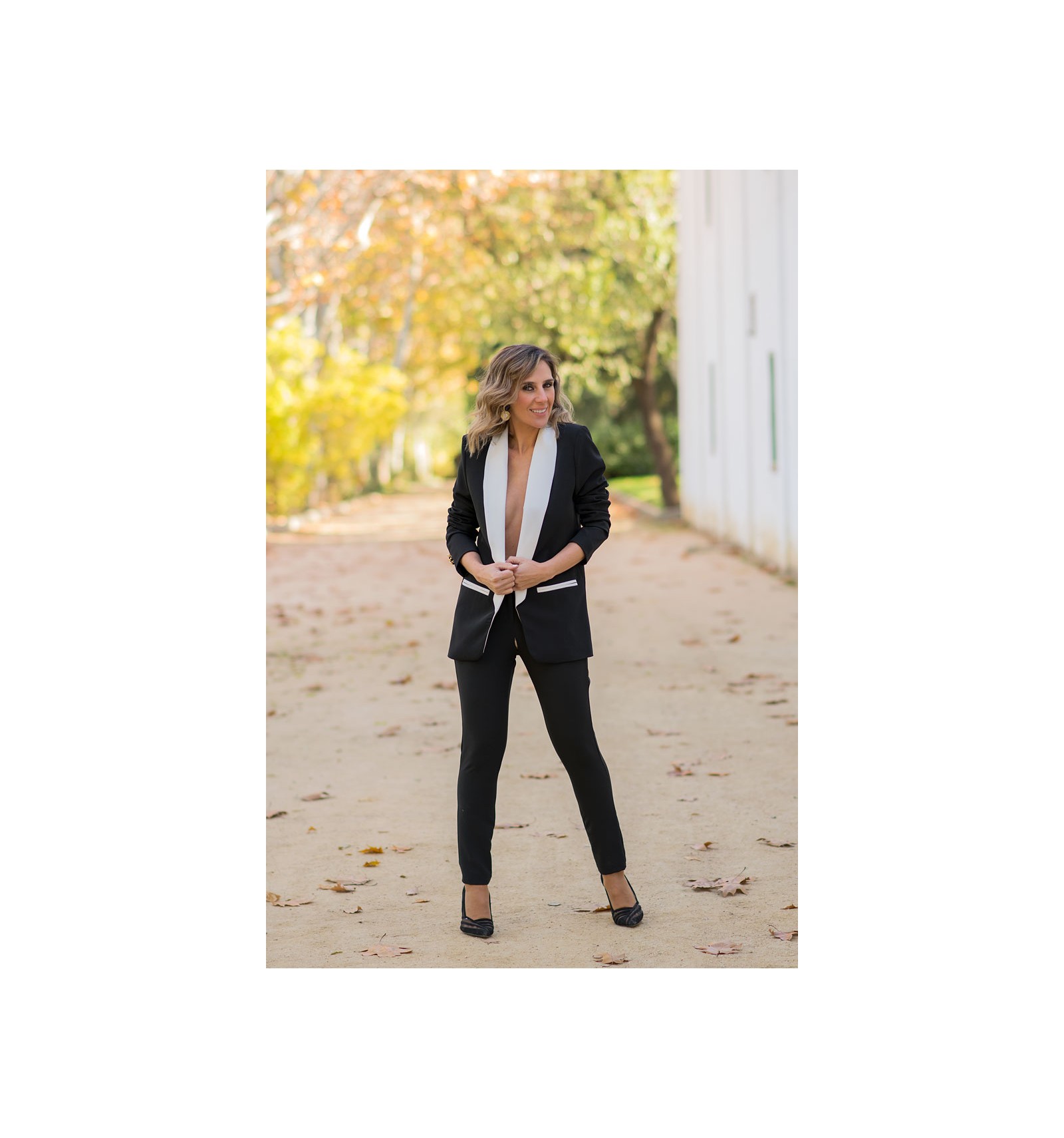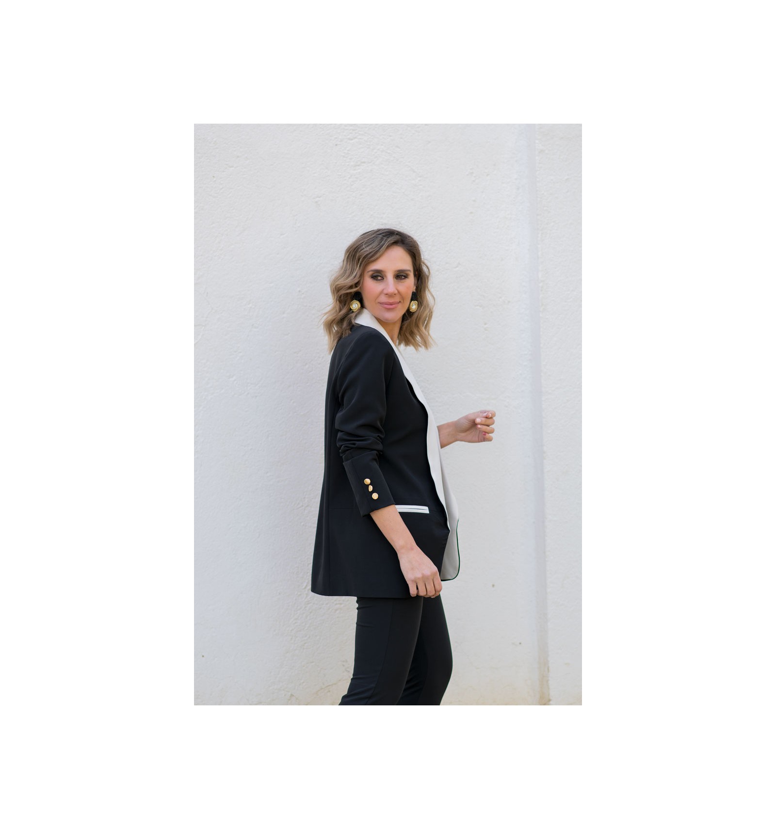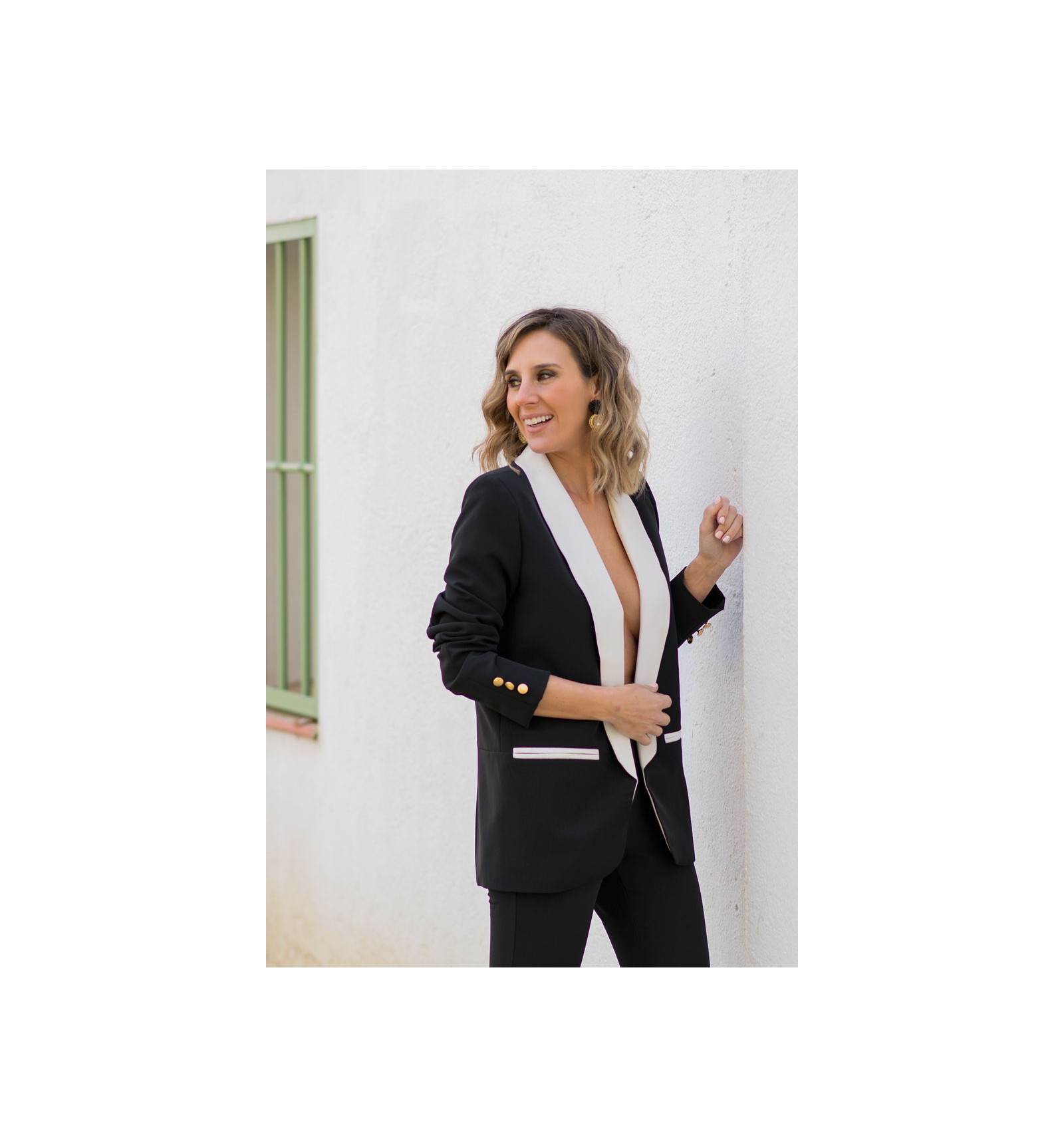 Nuestro traje está compuesto por dos piezas, su chaqueta de solapa está pensada para que puedas ponerla de varias formas, puedes llevarla abierta incorporando una top o blusa, cerrada ya que tiene un botón que por cierto ¡es precioso!