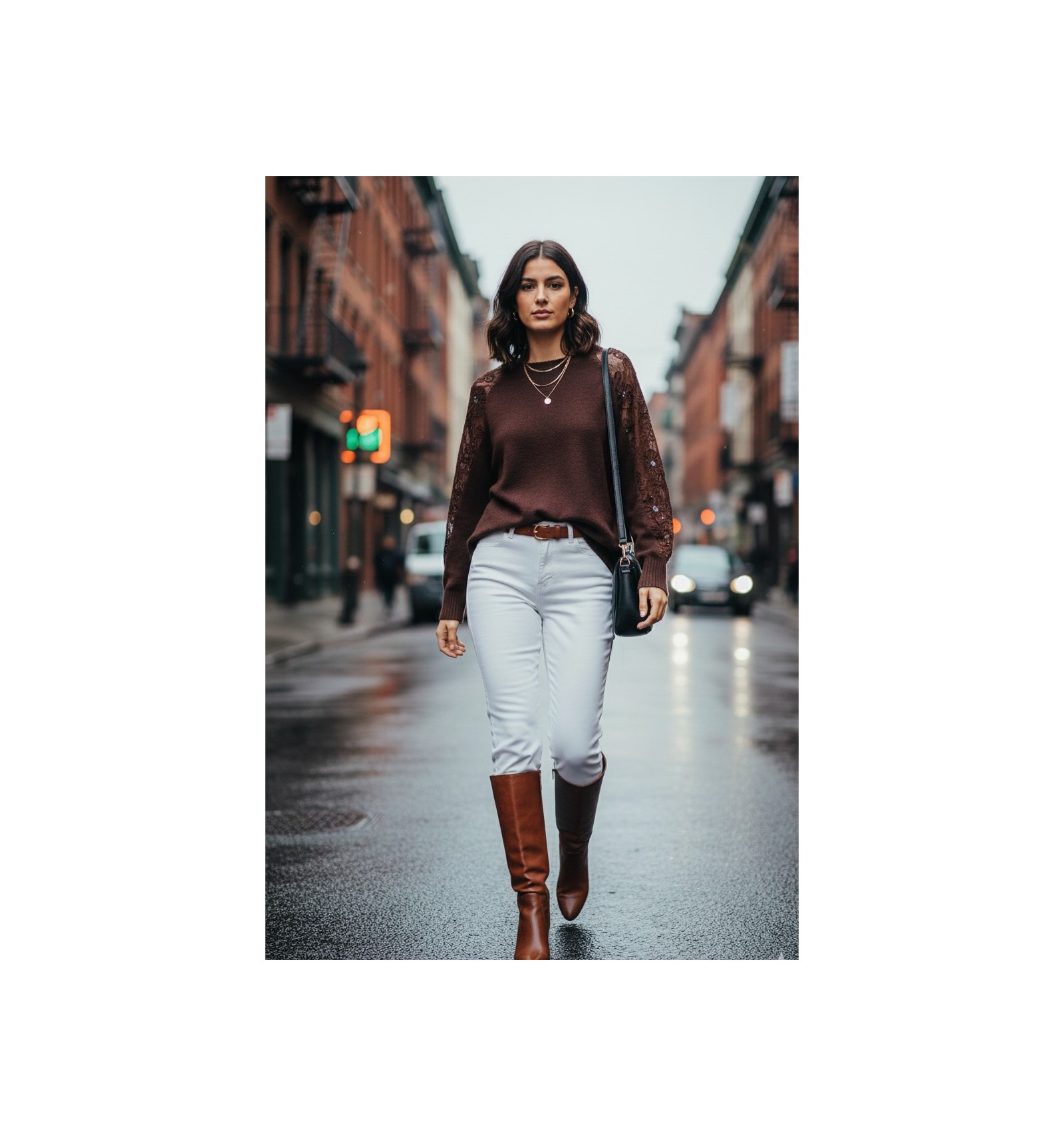 ELEGANCIA Y DETALLES: eL JERSEY DE PUNTO MARRON CON ENCAJE.